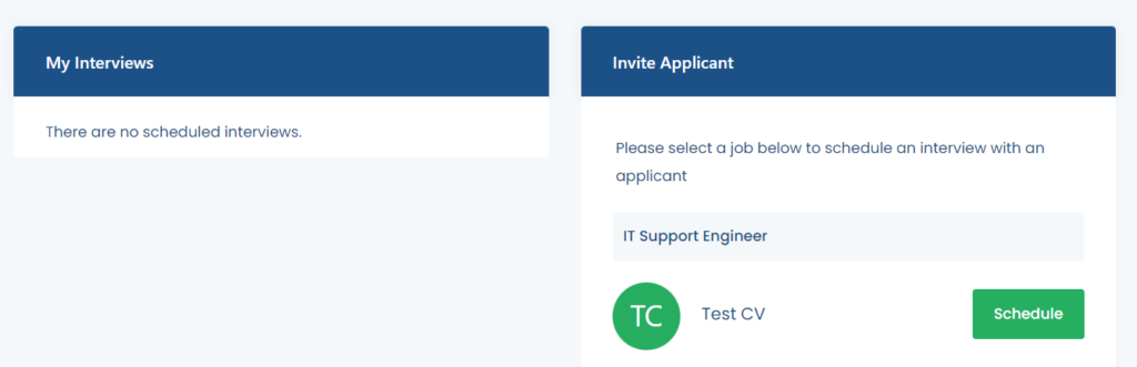 Invite candidates to an interview through the interviews tab.