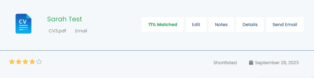 Now when you view your job applications, the portal will automatically scan the CV and provide you with a percentage match. Saving you time searching through job applications.